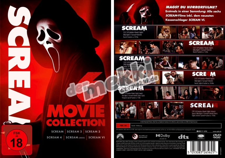 Erstmals in dieser Sammlung: Alle sechs SCREAM-Filme inkl. dem neuesten Kassenschlager Scream 6.