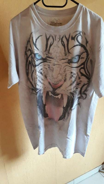 DAMEN SHIRT, GRÖßE L, GRAU MIT TIGER BEDRUCKT, MARKE: MOUNTAIN, NEU, FIXPREIS PLUS VERSANDKOSTEN.