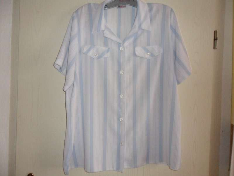 DAMEN BLUSE, GRÖßE XL, BLAU/WEIß GESTREIFT MIT SCHULTERPOLSTER, MARKE: FASHION NEWS, NEU, FIXPREIS PLUS VERSANDKOSTEN.