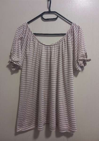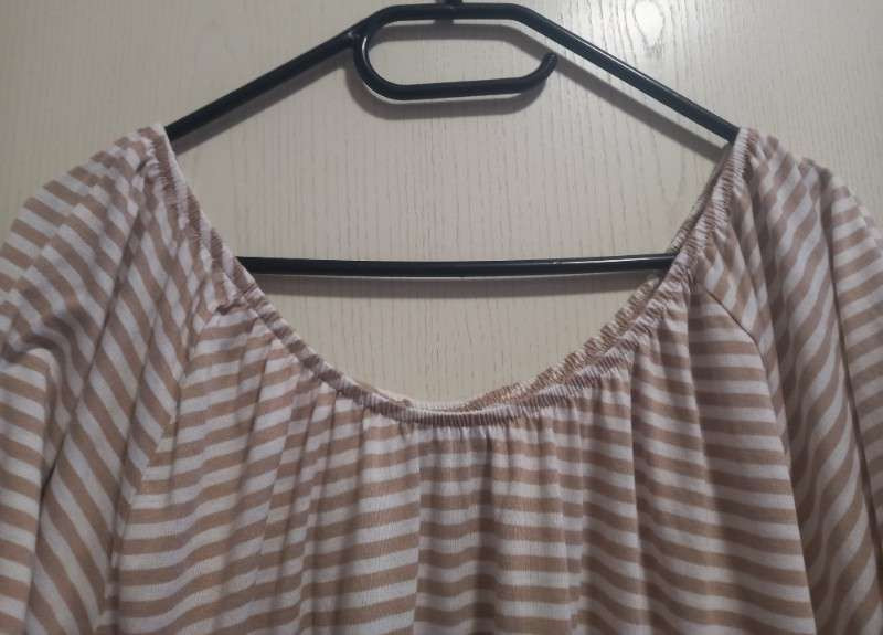 DAMEN SHIRT, GRÖßE 48/50, MARKE: GINA BENOTTI, BEIGE / BRAUN GESTREIFT, NEUWERTIG, FIXPREIS PLUS VERSANDKOSTEN.