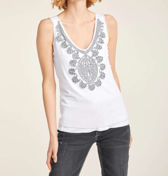 Entdecken Sie das exklusive Damen Top 2 lagig, das durch sein elegantes Design und die detailreiche Verzierung jedem Outfit das gewisse Etwas verleiht. Dieses Top in der Größe 44 zeichnet sich durch seine hochwertige Verarbeitung und das zweilagige Design aus, das nicht nur Tragekomfort, sondern auch eine schmeichelhafte Passform bietet. Die vornehme weiße Farbe macht es vielseitig kombinierbar, während das auffällige, silberne Pailletten- und Stickereimuster im Brustbereich jedem Outfit einen Hauch von Glamour verleiht. Perfekt für besondere Anlässe oder als schicker Alltagsbegleiter – dieses neue Stück darf in keinem Kleiderschrank fehlen!