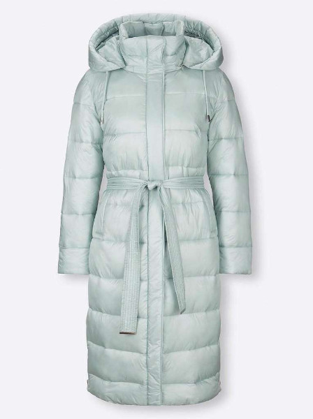 DAMEN STEPPMANTEL MIT KAPUTZE & GÜRTEL, GRÖßE 42, MINTGRÜN, MARKE: HEINE, NEU MIT ETIKETT, FIXPREIS PLUS VERSANDKOSTEN. UVP 159,90 EURO.