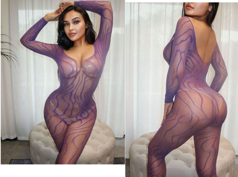 DAMEN CATSUIT, GRÖßE XS, TRANSPARENT, VIOLETT, NEU & OVP, FIXPREIS PLUS VERSANDKOSTEN.
