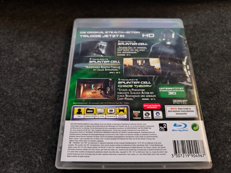 Erlebe die fesselnde Atmosphäre von Spionage und verdeckten Operationen in der "Tom Clancy's - Splinter Cell Trilogie", jetzt remastered in HD. Diese Klassiker-Sammlung für die PlayStation 3 bietet dir die Möglichkeit, die drei legendären Spiele - Splinter Cell, Splinter Cell: Pandora Tomorrow und Splinter Cell: Chaos Theory - in verbesserter Grafik und mit Unterstützung für stereoskopisches 3D zu genießen. Perfekt für Fans von Stealth-Games und Neulinge gleichermaßen!