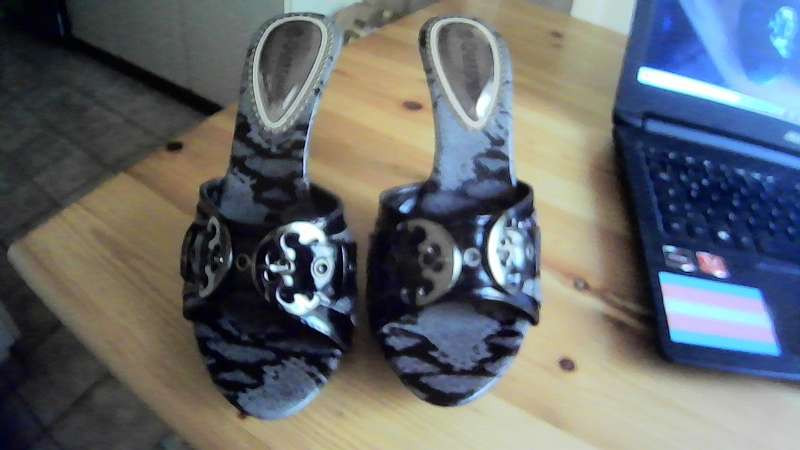 Die hochwertigen Materialien und die sorgfältige Verarbeitung garantieren Langlebigkeit und Beständigkeit, während das schicke Design Ihre Füße in einem atemberaubenden Licht präsentiert. Das charakteristische Muster und die metallischen Details auf dem Schuh verleihen Ihrem Outfit einen Hauch von Luxus und Exklusivität. Lassen Sie sich diese Chance nicht entgehen, Ihren Schuhschrank um ein Paar exklusive Pantoletten zu bereichern, die sowohl Komfort als auch Stil bieten.