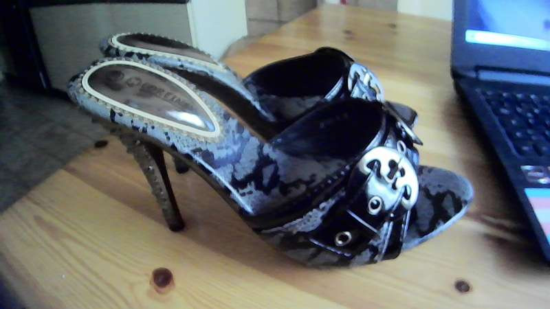 DAMEN PANTOLETTEN, GRÖßE 39, SCHWARZ, GLITZER ABSATZ 11cm, MARKE: LOREINXY PARIS, NEU MIT KARTON, FIXPREIS PLUS VERSANDKOSTEN.