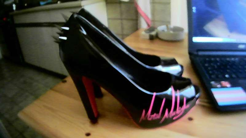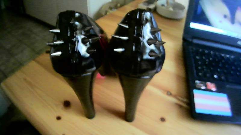 DAMEN PUMPS MIT STACHELN, GRÖßE 39, SCHWARZ / PINK, ZEHEN OFFEN, MARKE: LOVE MASCHINE, ABSATZ 12cm, NEU MIT KARTON, FIXPREIS PLUS VERSANDKOSTEN.