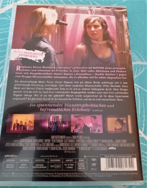 Tauche ein in die Welt des Science-Fiction mit der DVD Rupture - Überwinde deine Ängste, einem packenden Film, der dich an den Rand deiner Vorstellungskraft führen wird. Diese DVD ist ein Muss für alle Liebhaber von intensiven Thrillern und düsteren Sci-Fi-Geschichten, die unter die Haut gehen.