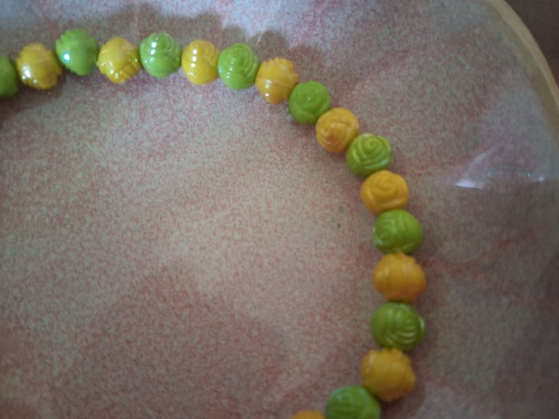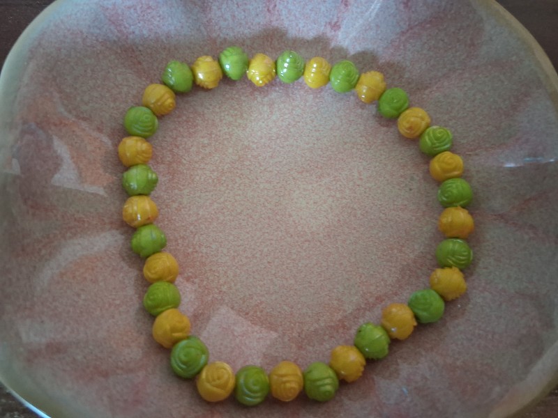 Dieses Elastische Perlen Armband bringt sofort gute Laune an Dein Handgelenk: Auf dem Bild siehst Du eine harmonische Abfolge aus grünen und gelben Perlen, die wie kleine, zart geriffelte Rosenknospen wirken. Genau dieser verspielte Look macht das Armband zu einem Schmuckstück, das nicht laut sein muss, um aufzufallen – es wirkt freundlich, frisch und gleichzeitig liebevoll detailverliebt.