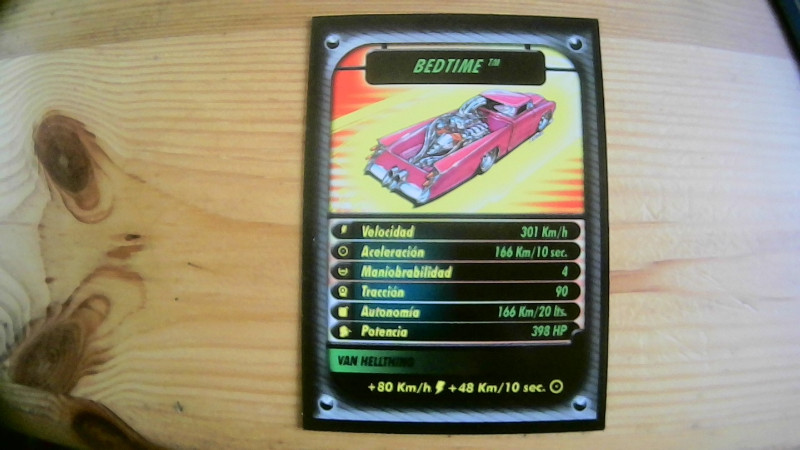Auf der Karte im lebendigen Design sind beeindruckende technische Details des Fahrzeugs abgebildet: Mit einer Höchstgeschwindigkeit von 301 km/h, einer Beschleunigung von 0 auf 100 km in 10 Sekunden und einer Leistung von 398 PS, verkörpert diese Karte pure Kraft und Geschwindigkeit. Die Angaben zur Manövrierbarkeit und Traktion bieten einen tiefen Einblick in die technischen Fähigkeiten des "BEDTIME"-Modells und machen es zu einem Highlight jeder Sammlung.
