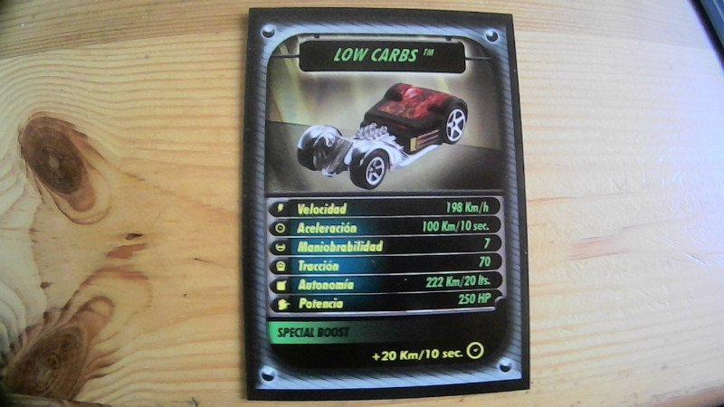 Die Karte präsentiert detaillierte Angaben zur Manövrierbarkeit, Traktion, Autonomie und Potenz. Mit 70 Punkten in Traktion und einer Autonomie von 222 km/20 l Kraftstoff, gepaart mit einer atemberaubenden Leistung von 250 HP (Horse Power), zeigt diese Karte, was Hot Wheels Fahrzeuge wirklich in sich haben. Der Spezialboost von +20 km/10 sec hebt die Performance in jedem Spielzug auf ein neues Level.