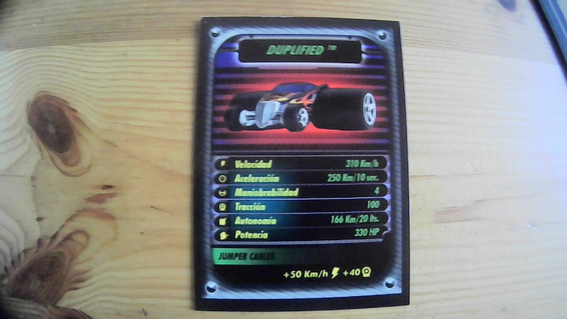 Das Bild der Karte zeigt den "Duplicar" in lebhaften Farben und dynamischer Pose. Auffallend sind hier die spezifischen Details wie Geschwindigkeit (310 km/h), Beschleunigung (250 m/10 sek.), und Potenz (330 PS), die Fans des motorisierten Miniaturwunders begeistern werden. Die Karte misst die Manövrierfähigkeit, Traktion und Autonomie, wodurch ein umfassendes Bild der Fähigkeiten dieses Modells dargestellt ist.
