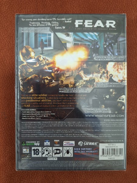 F.E.A.R. ist speziell für erwachsene Spieler konzipiert, wie das Rating von 18+ deutlich macht. Dies verdeutlicht den reifen und intensiven Charakter des Spiels, der sich durch eine düstere Atmosphäre und eine tiefgreifende, spannungsgeladene Handlung auszeichnet.