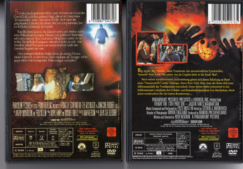 DVDs Freitag der 13. Teil 7 u. 8 Deutsche DVDs (Original Fotos)-Uncut