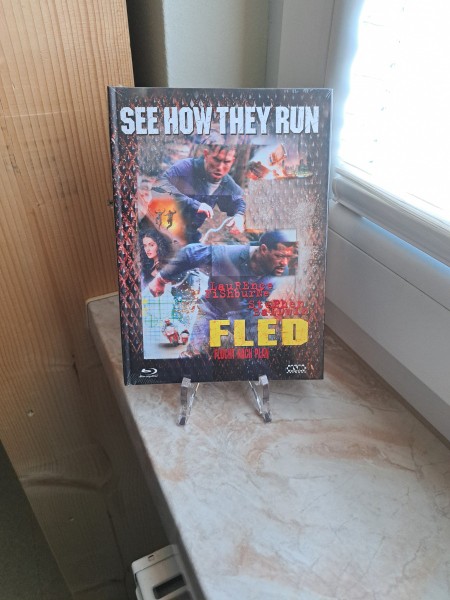 Das Cover des Mediabooks zeichnet sich durch eine dynamische und farbenfrohe Gestaltung aus und gibt Dir einen Vorgeschmack auf die atemlose Geschwindigkeit und die explosive Action, die Dich im Film erwarten. Der Titel "Fled" prangt stolz in großen Lettern und wird von dem eingängigen Slogan "See How They Run" ergänzt, welcher die Essenz des Films perfekt einfängt.