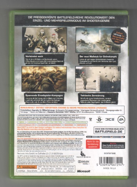 BF Bad Company 2 Limited Edition für die Xbox 360 ist die perfekte Wahl für Action- und Shooter-Fans. Die Limited Edition macht das Paket mit exklusiven Inhalten besonders attraktiv. Wenn Du bereit bist für Stunden voller Spannung und Herausforderungen, dann ist dieses Spiel genau das Richtige für Dich. Steige noch heute ein in die Welt von BF Bad Company 2 und erlebe Action, die Dich nicht mehr loslässt.