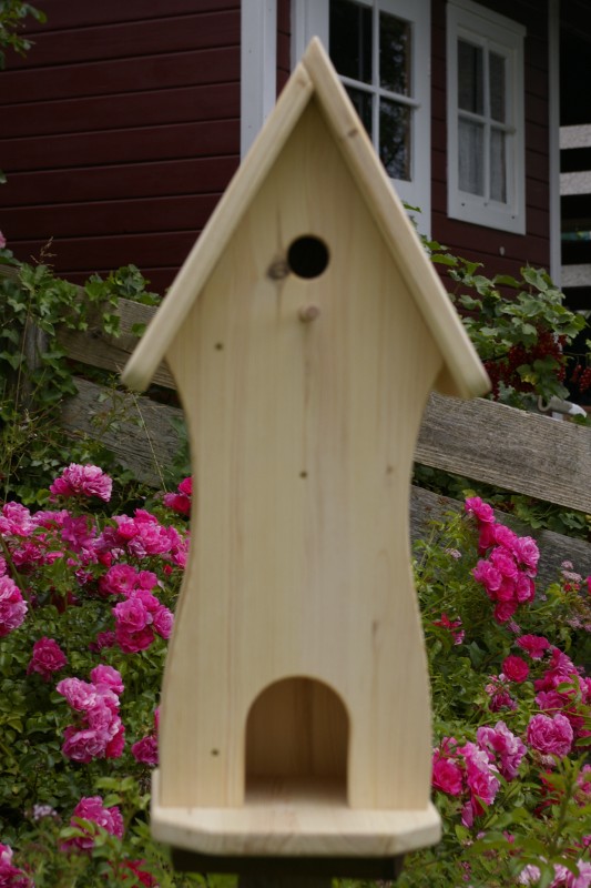 Vogelhaus wird komplett montiert und unbemalt versendet.