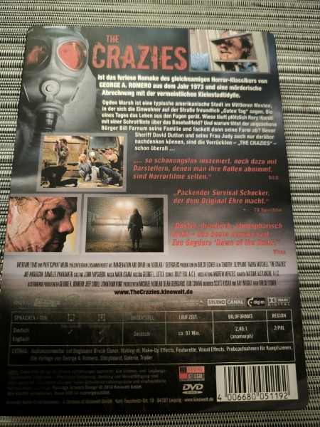 Hohe Sammlerwertigkeit: Steelbooks sind bei Sammlern und Filmfans wegen ihrer Langlebigkeit und ihres künstlerischen Werts sehr gefragt. "The Crazies" in dieser Ausführung ist ein wahres Sammlerstück.