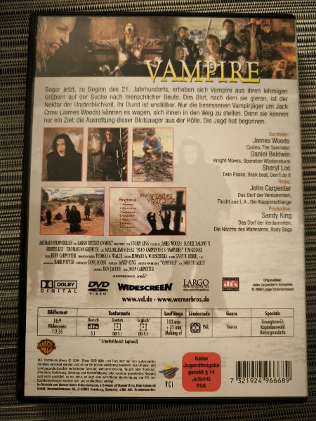Sicher dir jetzt deine Kopie von John Carpenters - Vampire und tauche ein in eine Welt, die so fesselnd wie erschreckend ist. Dies ist ein Muss für alle Sammler und Liebhaber des Horror-Genres. Sobald der Abspann läuft, wirst du verstehen, warum dieser Film als Klassiker gilt. Nichts für schwache Nerven – bereite dich darauf vor, den wahren Meister des Horrors zu erleben.