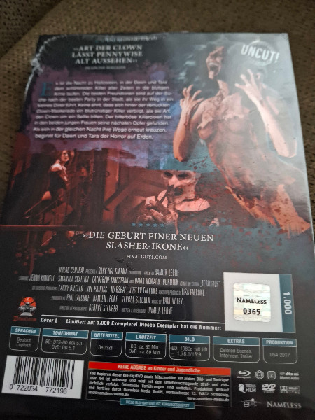 Ergreife jetzt die Chance und hol dir das Terrifier 1 Mediabook NAMELESS MEDIA Cover L. Lass dich in eine Welt entführen, die so furchteinflößend ist, dass du vielleicht nie wieder alleine das Licht ausschalten willst. Erlebe den Terror, fühle die Spannung und besitze ein Stück exklusiver Horror-Geschichte. Traust du dich?