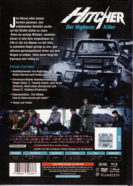 Auf 555 Stück limitiertes 2 Disc Nameless Mediabook von Hitcher Der Highway Killer Cover B (Original Fotos)-Uncut.