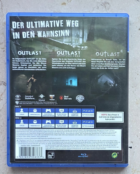Tauche ein in die düstere Welt von Outlast Trinity, erhältlich für die PlayStation 4. Dieses packende Bundle beinhaltet nicht nur Outlast 1 und Outlast 2, sondern auch das fesselnde Erweiterungspaket Whistleblower. Bereite dich auf eine unvergessliche Reise durch erschreckende Szenarien und intensive Geschichten vor, die dich an den Rand deines Sitzes fesseln werden.