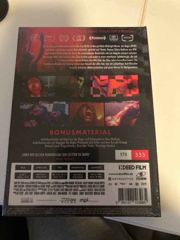 Tauchen Sie ein in eine düstere und fesselnde Welt mit der "Bliss Mediabook Bluray OVP". Dieses exklusive Mediabook ist ein Must-Have für Sammler und Horrorfilm-Fanatiker. Verpackt in einer hochwertigen und versiegelten Originalverpackung (OVP), bietet es nicht nur den spannenden Film "Bliss" von Joe Begos, sondern auch eine Vielzahl von Extras, die Ihr Filmerlebnis auf ein neues Level heben.