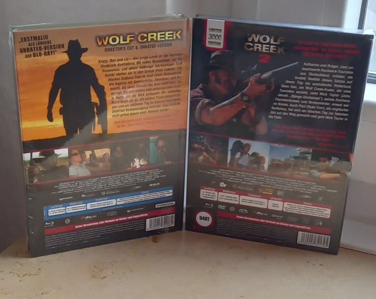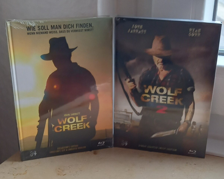 Ihr kauft hier die Filme  Wolf Creek Teil 1 + 2_in den limitierten Mediabooks.
