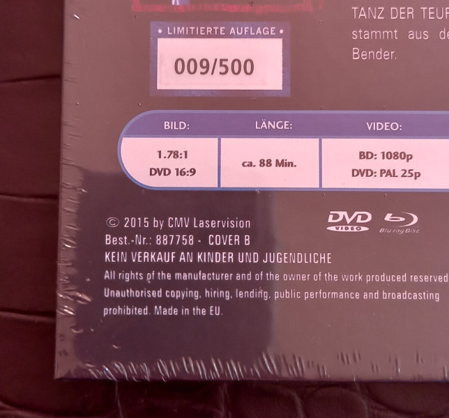 Das Mb ist vom Hersteller - XT Video in der begehrten Cover B Variante ( eines der schönsten Artworks wie ich finde ) und hat die LE- SonderNr. 009 von nur insg. 500 Stk.