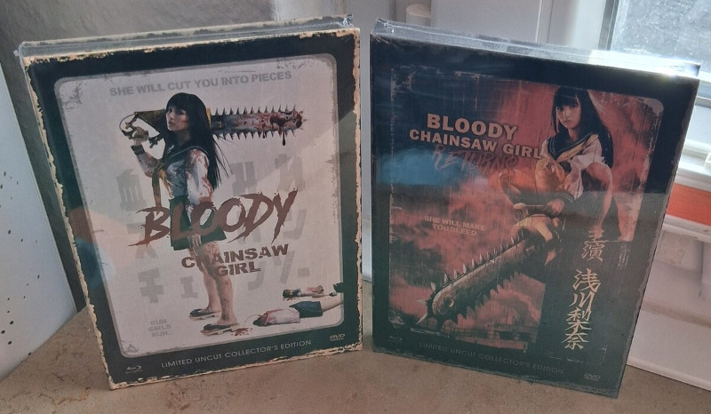 Ihr kauft hier die beiden Filme_Bloody Chainsaw Girl + Returns Teil 1 + 2 in limitierten Mediabooks.