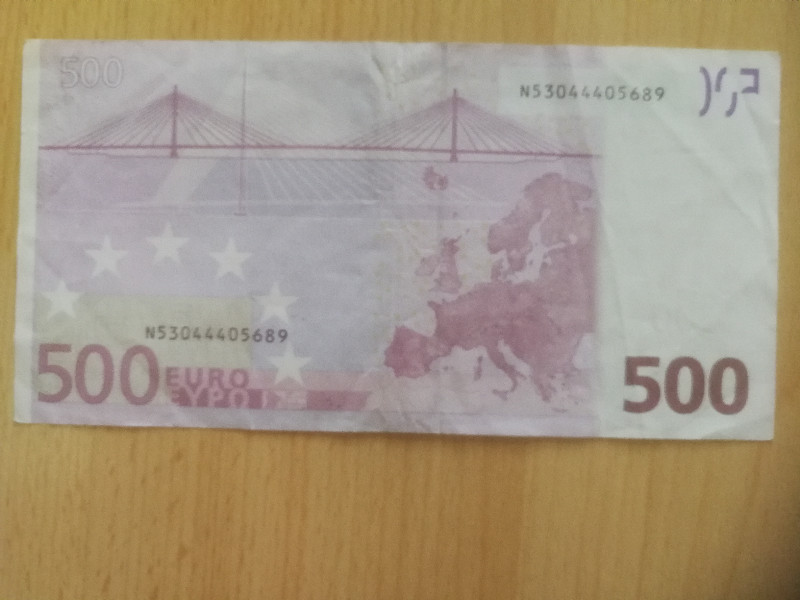 Geldschein 500 Euro N Serie wie auf den Bildern zu sehen.