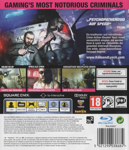 Ergreife jetzt die Gelegenheit und lass dich von „Kane & Lynch 2 - Dog Days“ in eine Welt entführen, die du so noch nicht gesehen hast. Hole dir das Game für deine PlayStation 3 und erlebe zusammen mit Kane und Lynch ein Abenteuer, das Nervenkitzel und adrenalingeladene Action garantiert!