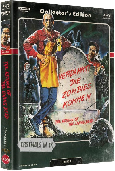 Zwei tölpelhafte Angestellte eines medizinischen Warenlagers erwecken versehentlich eine Leiche wieder zum Leben, die von einem unstillbaren Hunger auf menschliche Gehirne geplagt wird. Zum Glück gelingt es ihnen, den allzu lebhaften Toten wieder einzuäschern. Doch als dessen traurige Reste auf einen nahegelegenen Friedhof geschwemmt werden, rüttelt das eine ganze Bande fleischfressender Zombies aus dem wohlverdienten ewigen Schlaf. Die Sargdeckel lüften sich – und nun geht der Totentanz erst richtig los! Extras: Audiokommentar, Workprint, The Decade of Darkness uvm. UHD exklusives Extra: 35MM Scan Sprache: Deutsch, Englisch Tonformat: UHD/BD: DTS-HD MA 2.0 & 5.1 Untertitel: Deutsch Laufzeit: UHD/BD: ca. 91 Min. Bildformat: UHD: 2160p BD: 1080p Full HD 1.85:1