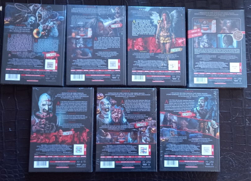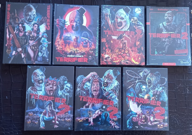 Ihr kauft hier die beiden Filme Terrifier Teil 2 A bis F + Double Feature im limitiertem Mediabook.