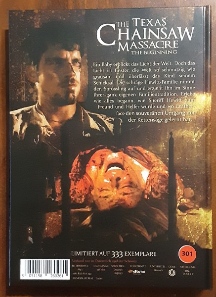 Erlebe das Grauen auf eine völlig neue Art mit dem Texas Chainsaw Massacre The Beginning Mediabook! Dieses einzigartige Sammlerstück bringt die düstere und verstörende Geschichte von Leatherface und seiner unheilvollen Familie direkt in dein Wohnzimmer.