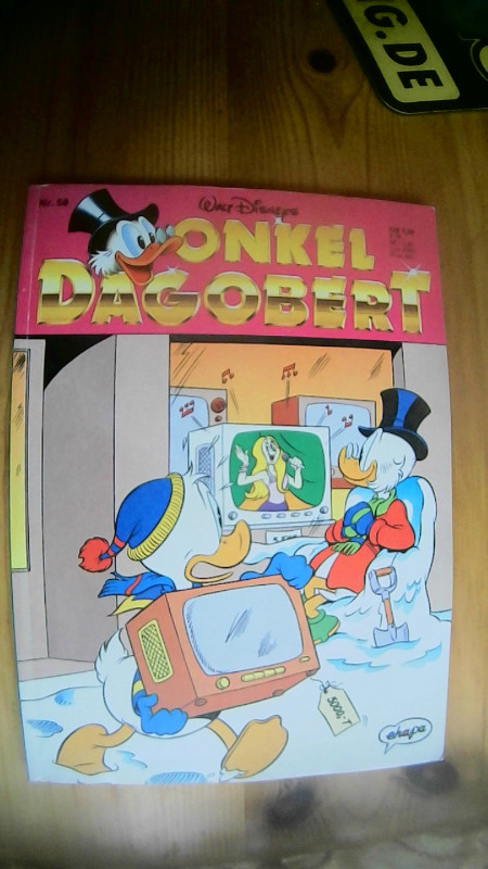 Du bekommst hier ein echtes Stück Disney-Comic-Nostalgie: „Onkel Dagobert“ Nr. 58 (1992) – und das in neuwertigem Zustand. Auf dem Foto ist genau dieses einzelne Heft zu sehen: das klassische Onkel?Dagobert?Comic mit dem typischen, farbenfrohen Cover-Design, wie man es aus den 90ern kennt. Schon das Titelbild macht sofort Lust aufs Lesen und Sammeln: Dagobert Duck steht im Mittelpunkt, dazu die vertraute Comic-Optik mit klaren Farben und dem markanten Schriftzug „Onkel Dagobert“.