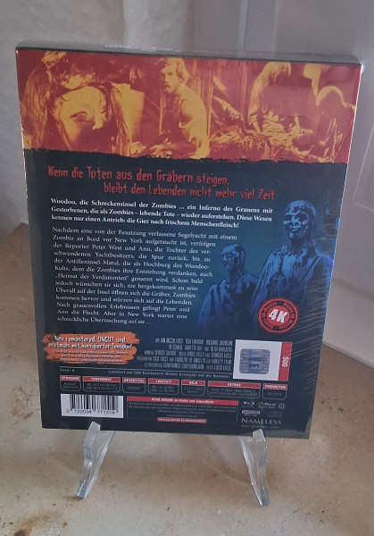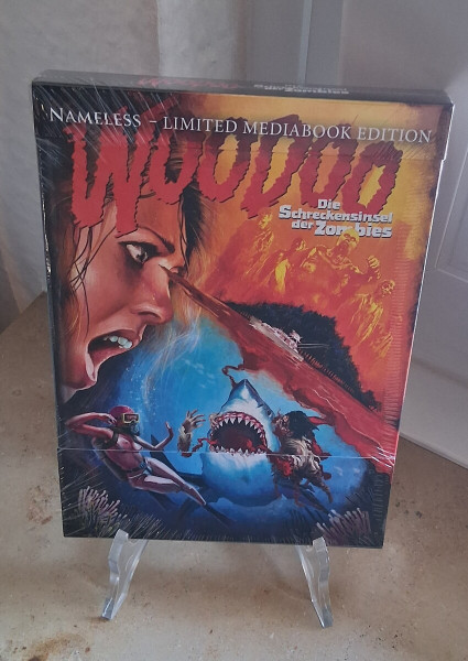 Auf dem Bild zu sehen ist ein eingeschweißtes (OVP) Limited Mediabook mit dem Titelmotiv „Voodoo – Die Schreckeninsel der Zombies“. Oben auf dem Cover steht deutlich „Nameless – Limited Mediabook Edition“ – das spricht Sammler sofort an, denn solche Ausgaben sind in der Regel aufwendig gestaltet, hochwertig verarbeitet und klar als Limited Edition positioniert.
