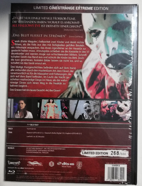 Der Film beginnt dort, wo alles seinen Anfang nahm: in der furchterregenden Welt des Schurken Art the Clown. Diese unvergessliche Ikone des Grauens zieht euch in eine düstere Halloween-Nacht hinein. Das Mediabook besticht durch detailreiche Covergestaltung und Hochglanzveredelung, die dieses blutige Meisterwerk perfekt in Szene setzen. Erlebt exklusive Extras und Bonusmaterialien, die tiefe Einblicke hinter die Kulissen gewähren.