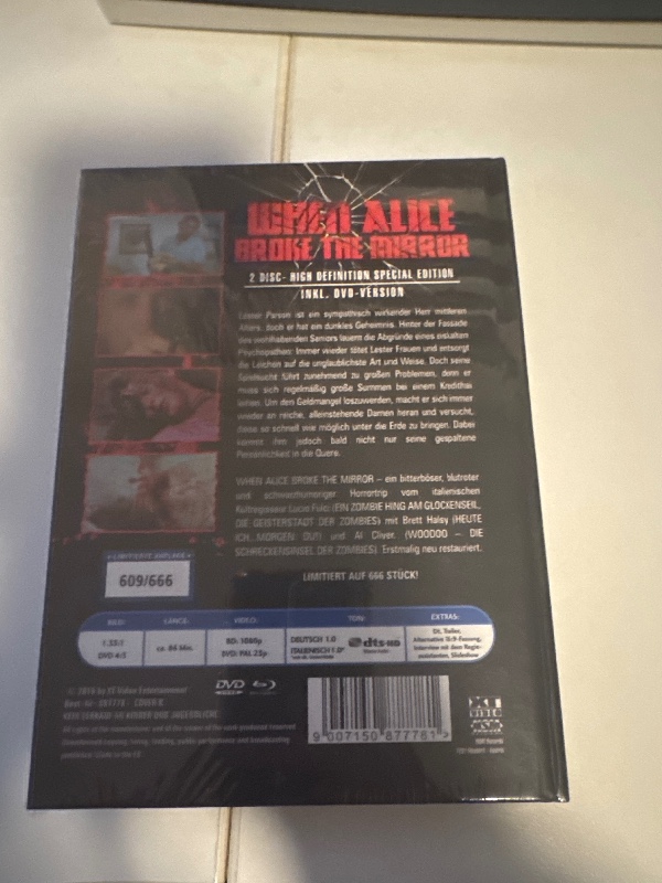 Das Cover des Mediabooks zeigt aufsehenerregende, düstere Grafiken, die sofort das Interesse eines jeden Horrorfilm-Enthusiasten wecken. "When Alice broke the Mirror" ist nicht nur ein Film, sondern ein Erlebnis, das verstört, fasziniert und gleichzeitig unterhält. Für Fans des Horror-Genres und Anhänger von Lucio Fulci ist dieses Mediabook ein absolutes Must-have.