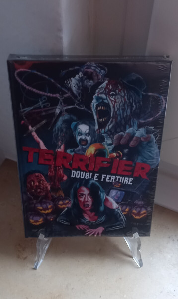 Ihr kauft hier die beiden Filme _Terrifier Teil 1 + 2 Double Feature_im limitierten Mediabook.