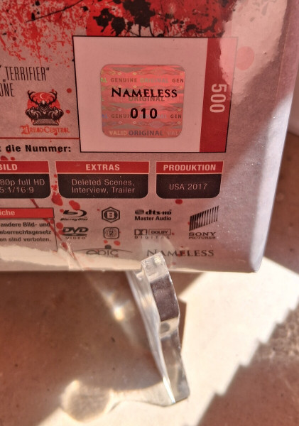 Wenn Du Horror nicht nur schauen, sondern sammeln willst, ist dieses Stück genau Dein Ding: Das „Terrifier“ Mediabook in der runden Nummer 10/500 – und dazu OVP (originalverpackt). Schon das Cover haut rein: Das ikonische, bedrohliche Gesicht des Killers dominiert die Front und bringt die kompromisslose Stimmung von Terrifier sofort auf den Punkt. Ein echtes Statement im Regal – düster, roh und genau so, wie Hardcore-Fans es lieben.