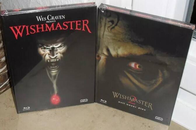 Sichere Dir Wishmaster Teil 1 + 2 Mediabook OVP und gönn Dir Horror, der Deine Wünsche garantiert nicht freundlich erfüllt.