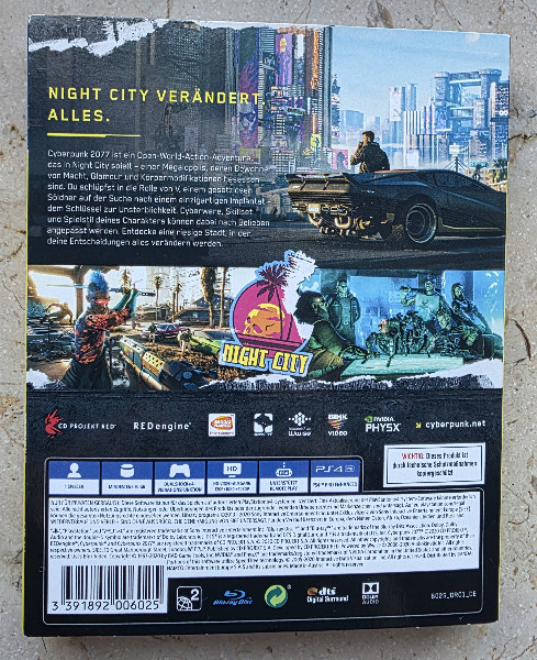 Was sofort klar ist: Das Spiel ist offiziell USK 18 – du bekommst also kompromisslose Unterhaltung, so wie es bei einem düsteren Zukunfts-Setting sein soll. Und weil es sich um die Day One Edition handelt, ist das die Ausgabe, die viele Spieler gern haben, wenn sie Cyberpunk 2077 auf Playstation 4 in einer besonderen Erstauflage suchen.