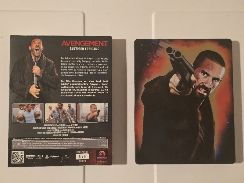 Zusätzlich zu den beiden Discs enthält diese Edition ein speziell gestaltetes Cover, das Scott Adkins in einer intensiven und rohen Pose zeigt, bereit, sich seinen Weg durch jeden Gegner zu kämpfen. Die Rückseite des Steelcases zeigt Adkins hinter Gittern, symbolisch für die Hindernisse und Kämpfe, die sein Charakter im Film überwinden muss.