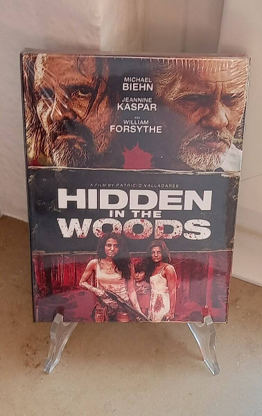 Schon das Cover macht klar, in welche Richtung es geht - dreckig, düster, bedrohlich. Im oberen Bereich sind die Darsteller-Namen klar zu erkennen: Michael Biehn, Jeannine Kaspar und William Forsythe. Darunter prangt der Titel HIDDEN IN THE WOODS in massiver, abgenutzter Typo – wie aus einer Welt, in der Hoffnung längst zu Staub geworden ist. Unten zeigt das Artwork drei Figuren in einer unheilvollen Wald- und Blutrot-Atmosphäre - genau diese Mischung aus Überlebenskampf, Angst und roher Härte macht den Reiz dieses Horror-Titels aus.