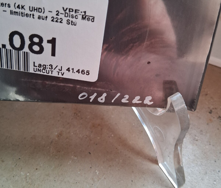 Das Mb ist vom Hersteller Uncut.TV in der Cover D Variante und hat die LE.- Nr. 018 von insg. 222 Stk.Versand erfolgt per versichertem DHL Paket inkl. Sendungsnr. einmalig 6 € egal wie viele Artikel Ihr kauft.