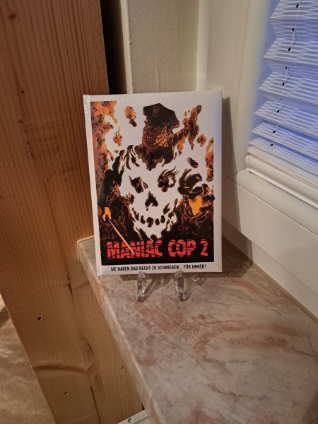 Du liebst Action mit düsterem 80s-/90s-Vibe und willst Dir ein Sammlerstück sichern, das im Regal sofort auffällt? Dann ist das Maniac Cop 2 Mediabook Ovp. genau das Richtige für Dich. Auf dem Bild siehst Du das Mediabook im aufrechten Display – mit dem ikonischen Cover-Motiv des brennenden Cops und dem markanten Titelzug „MANIAC COP 2“. Darunter prangt der Satz: -Sie haben das Recht zu schweigen… für immer!- Ein Versprechen, das perfekt zur kompromisslosen Stimmung dieses Films passt.