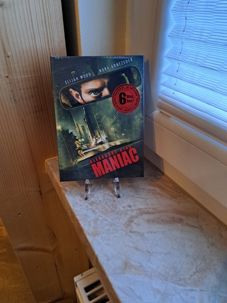 Wenn Du auf der Suche nach einem echten Hingucker für Deine Horror-Sammlung bist, ist das Maniac Mediabook Ovp. genau das Richtige. Auf dem Bild siehst Du das Mediabook in Originalverpackung (OVP) – stilvoll präsentiert, mit dem markanten Cover-Artwork, das sofort die düstere Stimmung des Films einfängt. Der Schriftzug MANIAC knallt in kräftigem Rot auf das Artwork und macht schon im Regal klar: Hier wartet kompromissloser Horror.