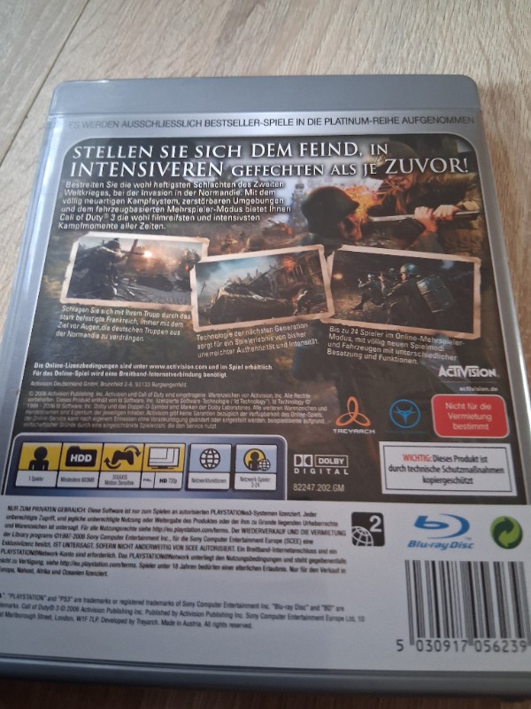 Wenn du Lust auf kompromisslose Kriegs-Action hast, ist Call of Duty 3 für die PlayStation 3 genau dein Ding. Hier bekommst du den dritten Teil der legendären Reihe als Platinum-Version - perfekt, wenn du dir den Klassiker für deine PS3-Sammlung sichern oder endlich nachholen willst, warum diese Serie so groß geworden ist.