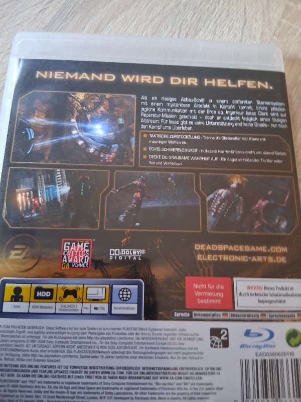 Wichtig für Sammler und alle, die es wissen müssen: Auf dem gezeigten Exemplar ist ein USK-Hinweis zu sehen - keine Jugendfreigabe gemäß §14 JuSchG. Damit richtet sich Dead Space klar an erwachsene Spieler, die den Nervenkitzel wollen und ihn auch aushalten.